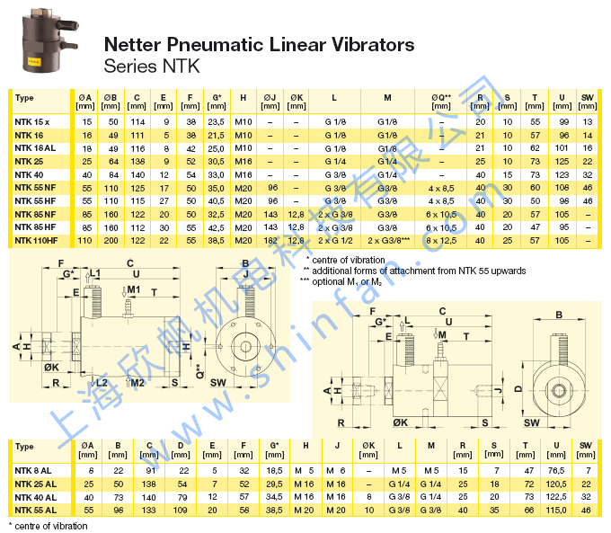 活塞振動器NTK8AL、NTK15X、NTK16、NTK18AL、NTK25、NTK40