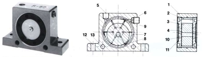 客體由擠壓鋁加工而成,精制鋼滾在其中滾動(dòng)。此鋼滾由兩片特制高抗沖擊塑料端蓋定位。在殼體上有兩個(gè)水平孔和兩個(gè)垂直孔,使安裝容易?諝鈴南嗷ゴ怪钡膬蓚(gè)進(jìn)氣孔中的一個(gè)進(jìn)入。這兩個(gè)進(jìn)氣孔為標(biāo)準(zhǔn)管螺紋。為堵住不用的一個(gè)進(jìn)氣孔,隨機(jī)提供一個(gè)管塞。